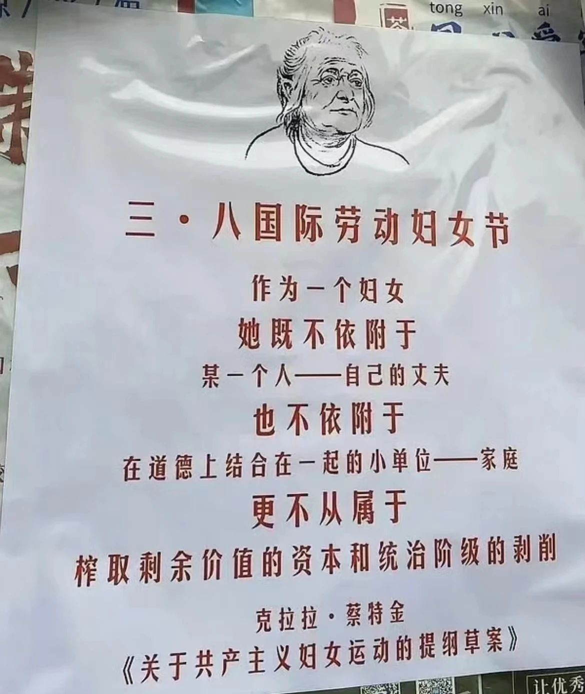 现在,它又进一步更名为“联合国妇女权益与国际和平日”,更全面地把女性都包括在内了(包括女童,女性老年人,或没有直接参加工作的女性)。这个名称更准确。因为,一个公平的、美好的社会,是一个弱者也能生存的社会。