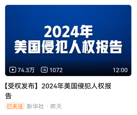 严重谴责美方侵犯人权!